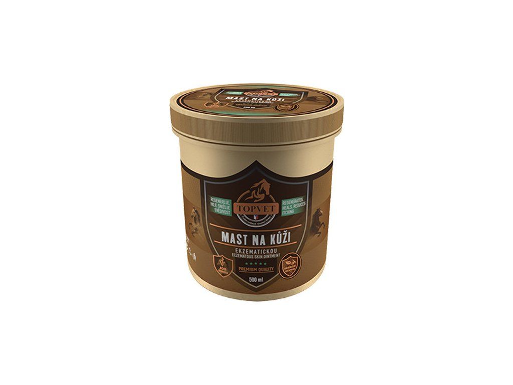 MAST NA EKZEMATICKOU KŮŽI. Veterinární přípravek pro koně. Je určena pro koně s kožními problémy. Originální receptura pokožku vyživuje, hydratuje a chrání před vnějším prostředím. Bylinná kompozice pokožku zvláčňuje, snižuje svědivost a obnovuje elasticitu. Je vhodná na rozškrábanou pokožku pro koně s letní vyrážkou. Mast vykazuje dlouhodobý účinek.