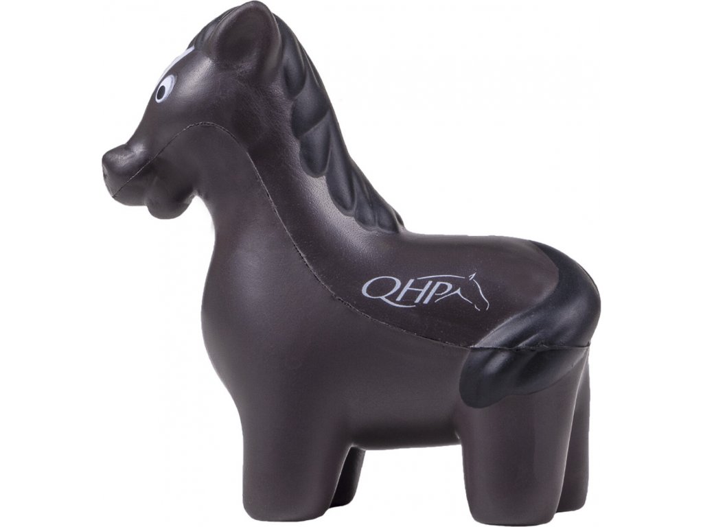 Měkká antistresová figurka ve tvaru koně. Pomáhá snížit stres, například před závodem. Opatřena nápisem QHP.