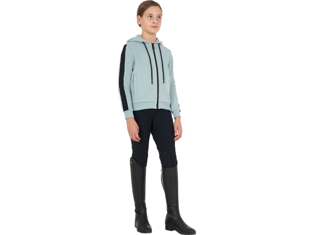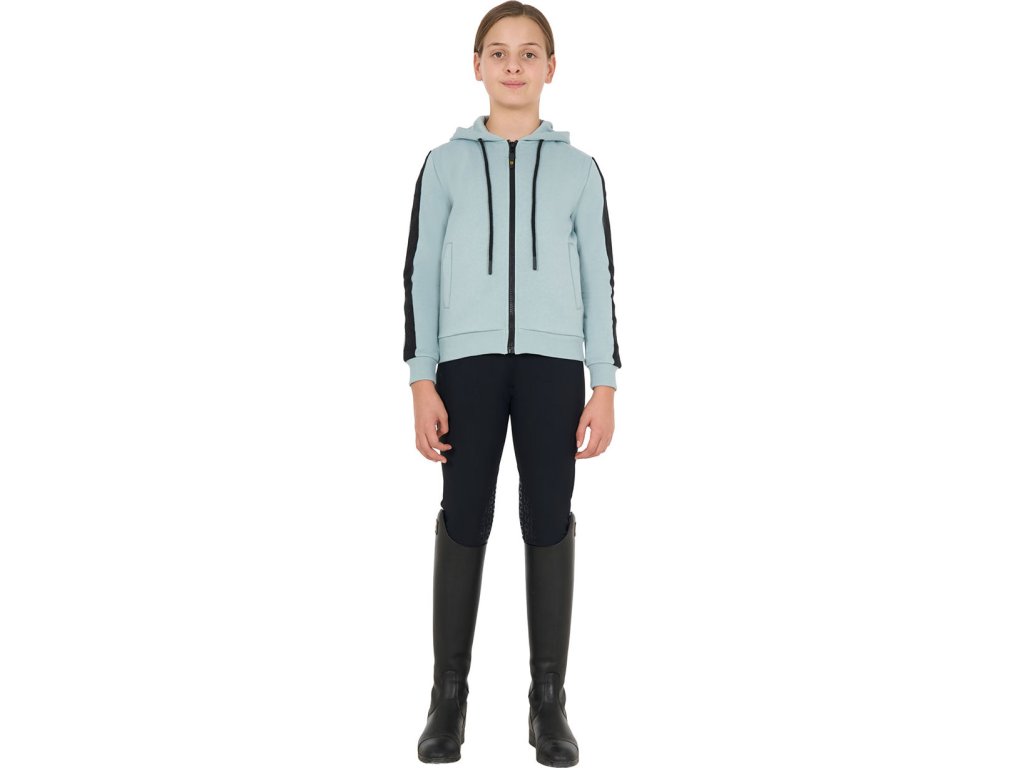 Vysoce kvalitní mikina vyrobená z měkkého bavlněného fleecu. Kombinuje klasickou funkčnost, hi-tech detaily a maximální pohodlí. Vnitřní fleecová podšívka skvěle zahřeje, tato mikina je tím nejlepším společníkem na zimu. Žebrované manžety a pas dodávají sportovní styl a udržují jezdce v teple i v nejchladnějších dnech. Vybavena zapínáním na zip, bočními kapsami na zip a kapucí se stahovací šňůrkou. Zdobena nápisem Equestro ve spodní části zad, logem na zádech pod kapucí a logy s nápisy podél rukávů. Dostupná ve dvou barvách a velikostech 8, 10, 12 a 14 let.