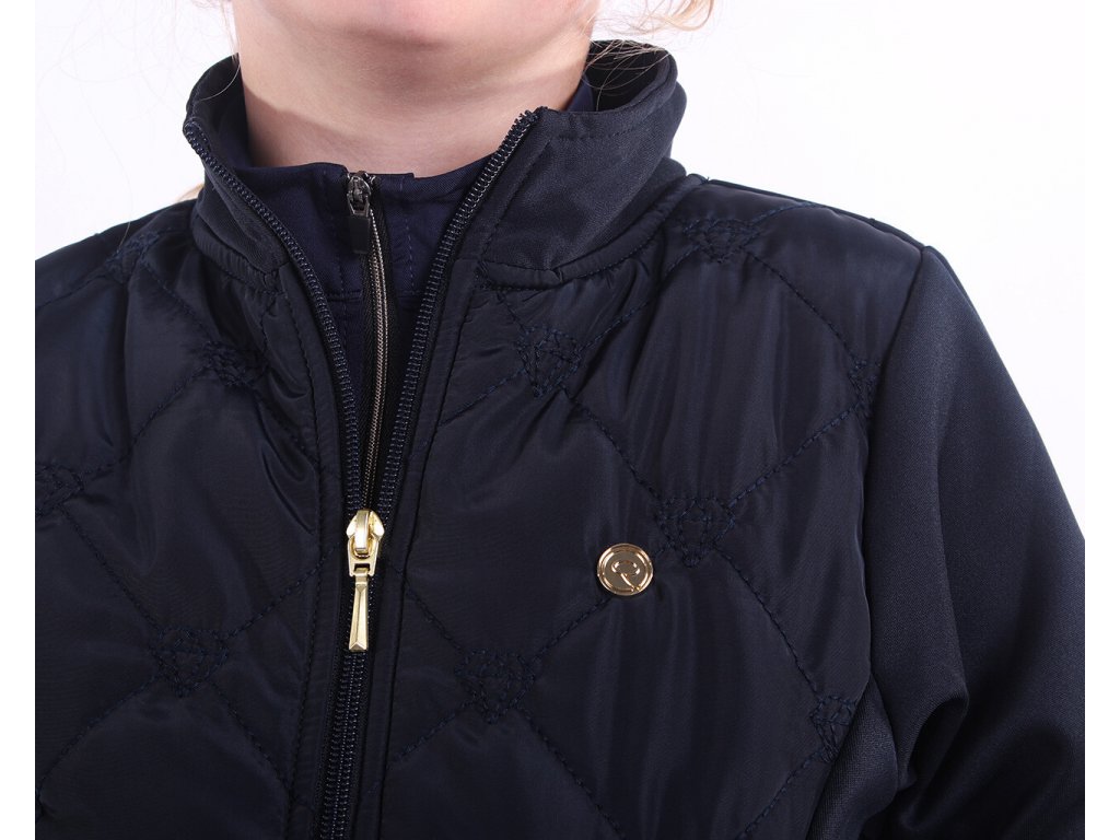 Elegantní mikina s lehkým zateplením do chladných letních dnů. Vyrobena je ze dvou odlišných látek s diamantovým prošíváním, které dodává elegantní vzhled. Opatřena je zipem po celé délce a dvěma kapsami na zip. Mikina má úzký střih, který se skvěle přizpůsobí postavě. Zdobena je malým znakem „Q“ na hrudi.