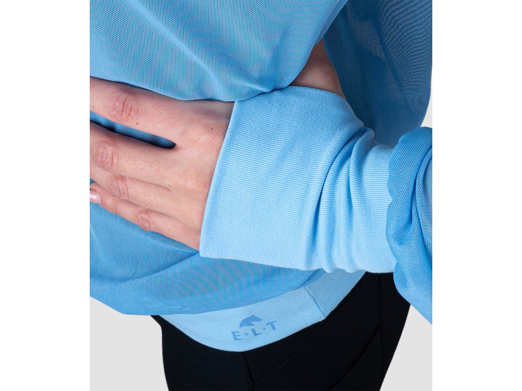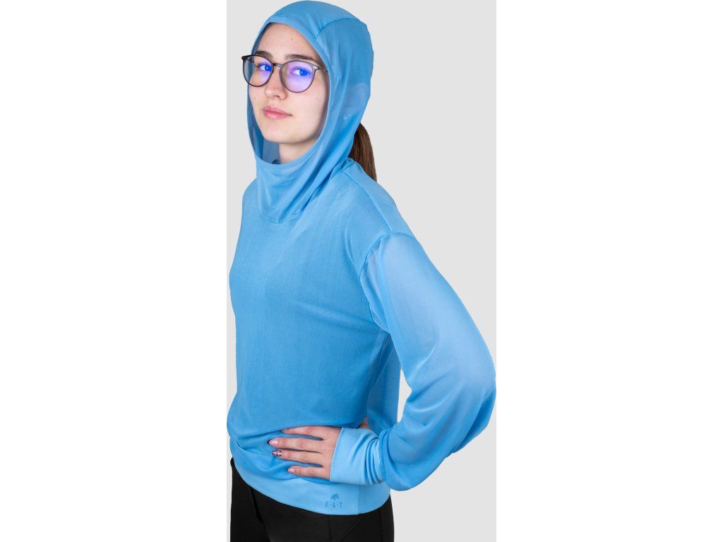 Velmi lehká dámská mikina z kvalitního elastického materiálu, který zajišťuje optimální ochranu proti hmyzu v letní sezóně. Spodní lem a lem rukávů je z příjemného jersey materiálu. Dlouhé manžety na rukávech nabízí pohodlí a jsou vybaveny integrovaným otvorem na palce. Pro ještě větší ochranu je vybavena kapucí s elastickým lemem a otvorem pro culík. Volný střih nabízí pohodlí při nošení. Zdobena je potiskem loga E·L·T.