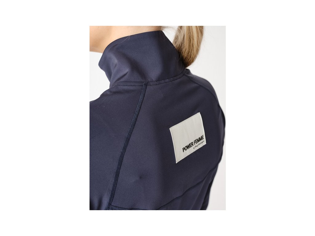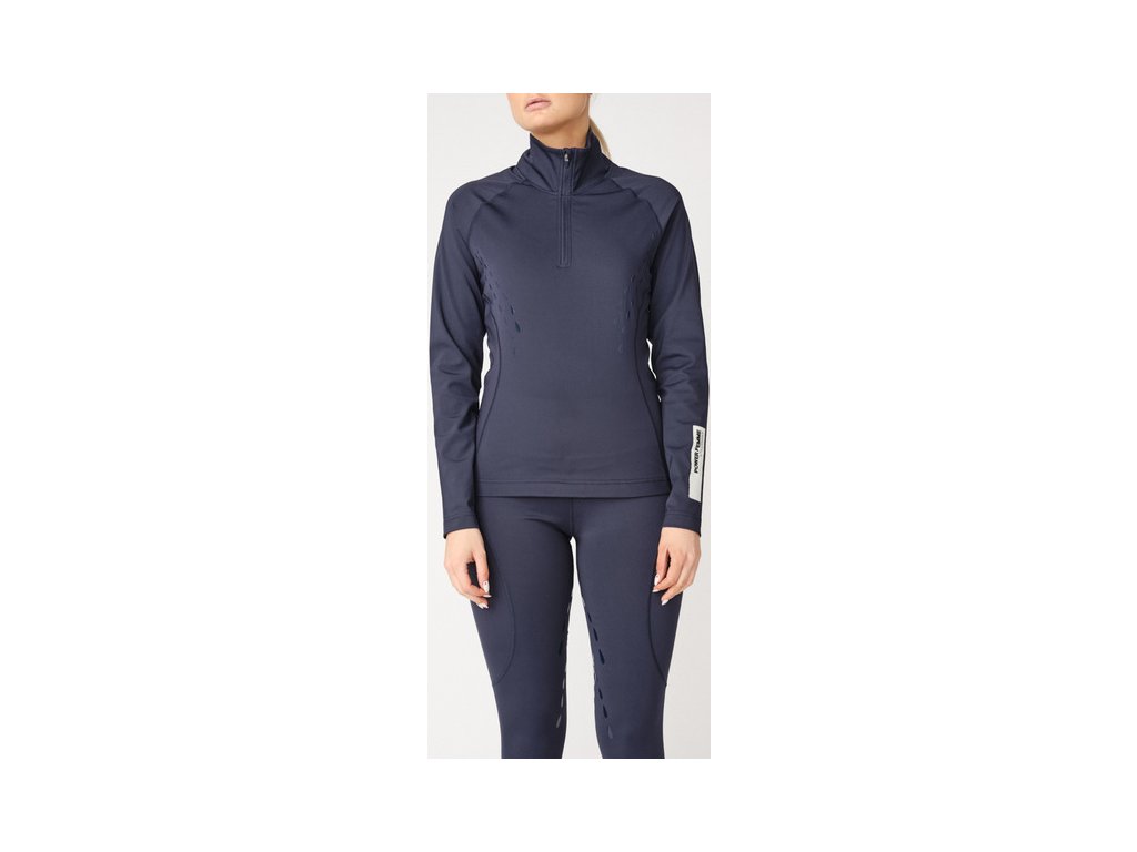 Pohodlná sportovní mikina. Vybavena středně vysokým stojáčkem se zipem. Vyrobena z vysoce elastického čtyřsměrného strečového materiálu, který zajišťuje pružnost a přiléhavost materiálu. Tento materiál skvěle absorbuje vlhkost. Mikina je zdobena silikonovými vzory ve tvaru kapky a nášivkou s názvem kolekce. Vhodná do stáje i do města.
