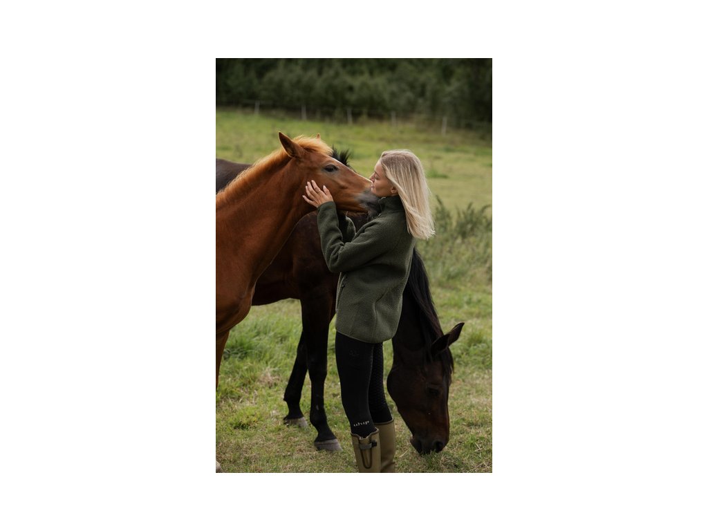 Mikina Cozy Pile Full Zip je ideální volbou pro chladná podzimní rána i první zimní mrazy. Je vyrobena z plyšového recyklovaného polyesteru, který šetří přírodní zdroje a energii, aniž by byla omezena odolnost, funkčnost nebo komfort. Materiál a poskytuje příjemné teplo a pohodlí při pobytu ve stáji, na procházce se psem i při relaxaci doma. Díky pohodlnému střihu ji lze nosit jako lehkou svrchní vrstvu na podzim nebo jako hřejivou střední vrstvu v zimě. Univerzální kousek pro každodenní nošení i pobyt venku. Má vysoký límec s légou za zipem a fleecovou podšívku, která chrání krk před chladem a větrem. Elastické zakončení rukávů a spodního lemu pomáhá udržet teplo uvnitř a zároveň zajišťuje pohodlné nošení. Dvě kapsy na zip bezpečně uschovají drobnosti.