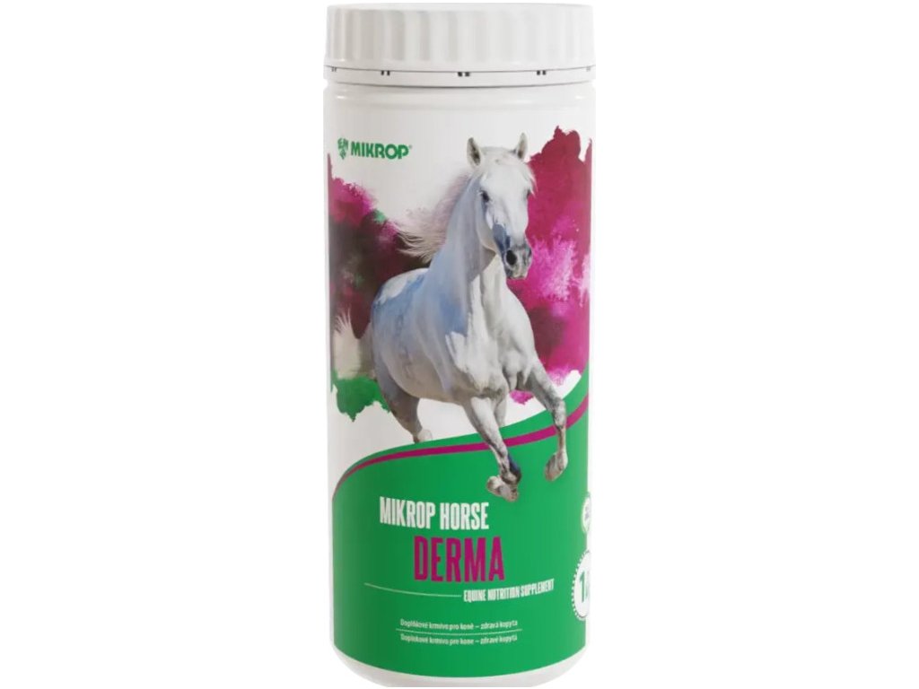 MIKROP® HORSE DERMA obsahuje komplex látek, které napomáhají růstu kopyt a udržují je zdravá. Produkt má nejvyšší obsah biotinu na trhu. Dále obsahuje DL-methion, esenciální aminokyselinu s obsahem organické síry; organicky vázaný zinek (chelátová forma) a vitamin B6. Tyto látky mají pozitivní vliv pro správný vývoj a rychlý růst kopytní rohoviny. Spolu s organicky vázanou mědí (chelátová forma) ovlivňují zdraví a kvalitu kůže a srsti.