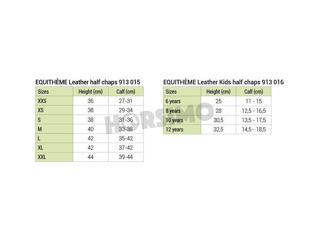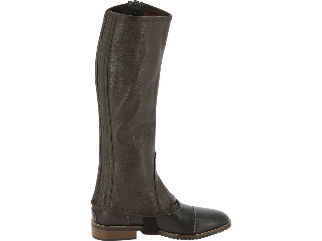 Jezdecké minichapsy vyrobené ze zrnité a velice měkké hovězí kůže. Spojují elegantní vzhled s komfortem a odolností. Lýtka a nárty jsou vybaveny elastickým materiálem, který zajišťuje perfektní přizpůsobení a pohodlí při jízdě. Praktický zadní zip je doplněn drukem pro bezpečné zapínání bez otlačení. Elastické kožené pásky pod chodidlem zajišťují stabilní usazení.