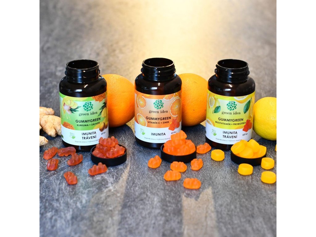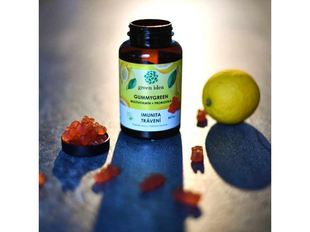 Gummygreen: dopřejte si mlsání s rozumem. Bonbony jsou na bázi pektinu (forma rozpustné vlákniny z rostlinného zdroje), a tím jsou vhodné i pro vegany. Komplex vitamínů slouží k podpoře imunitního systému, probiotika stimulují imunitu a udržují zdravý trávicí aparát. Gummygreen - Multivitamín + probiotika = Imunita, trávení - 100% vegan - Doplněk stravy.