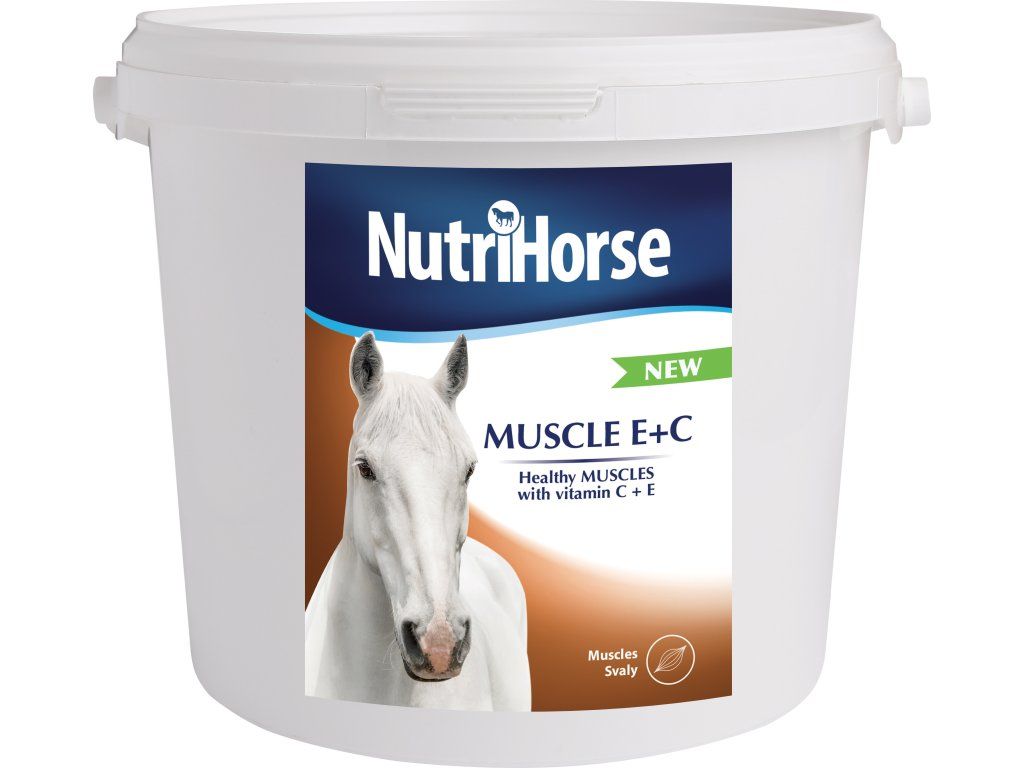 Vitamin E a C pro podporu zdravých svalů. MUSCLE E+C je doplňkové krmivo složené ze směsi antioxidantů (vitamin E a vitamin C), selenu a betainu pro udržení zdravých svalů. Usnadňuje správnou eliminaci volných radikálů (nebezpečné odpadní produkty látkové výměny vyvolávající oxidační stres a mající toxický účinek na tělo) zlepšením svalového tonusu a hbitosti. Muscle E+C pomáhá koním snášet delší námahu a oddaluje svalovou únavu. Selen, společně s vitamínem E, jsou důležitými látkami pro správný vývoj a funkci svalů. Přítomný extrakt z kurkumy (Curcuma longa L.) svými protizánětlivými a antioxidačními účinky podporuje imunitní systém. MUSCLE E+C se doporučuje podávat během intenzivního tréninku a v soutěžních dnech.