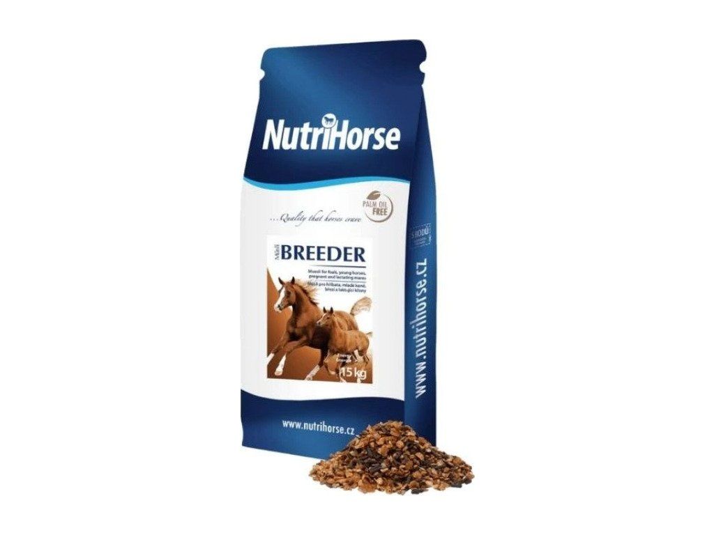 Müsli je vhodné především pro březí a kojící klisny. Zajišťuje maximální produkci mléka a odpovídající růst plodu. Nutrihorse Breeder 15 kg může být podáváno i právě narozeným hříbatům, která jsou již na toto krmivo zvyklá od matky.