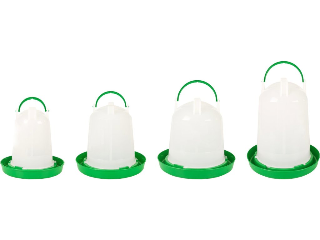 Automatická napáječka vhodná i pro kuřata. Snadno se přenáší díky rukojeti, která zároveň nabízí možnost zavěšení napáječky, čímž udržíte vodu čistou. Zásobník vody se přišroubuje ke dnu, což usnadňuje plnění a údržbu.