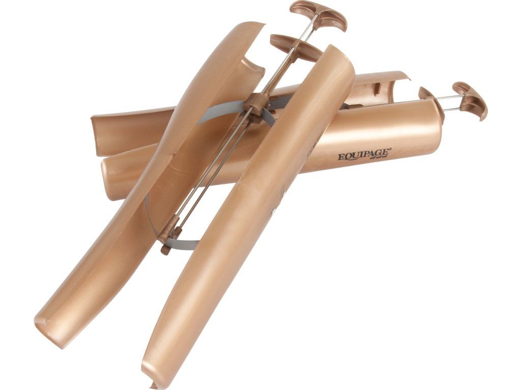 Napínáky do vysokých jezdeckých bot, které zabraňují předčasnému opotřebení kůže. Zajišťují botám jejich stálý tvar a kůži bez vrásek a záhybů. Vyrobené z odolného PVC materiálu. Lze je použít na boty s různou šířkou a zároveň také na vysoké boty, které nejsou primárně určené na jízdu na koni. Dodávané v páru. Po stranách tištěné logo EQUIPAGE.