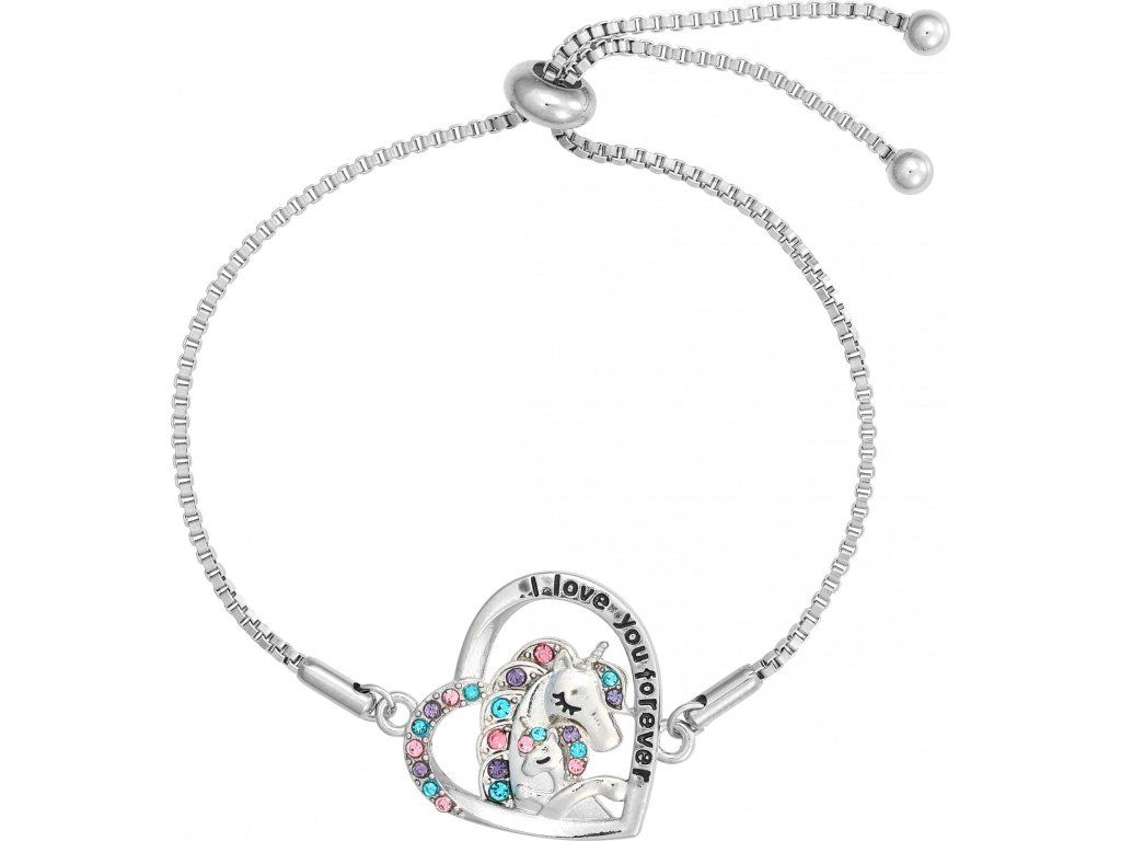 Roztomilý náramek s jednorožcem a jemnými kamínky. Zdoben galvanickým pokovováním z kvalitní slitiny bez obsahu niklu, což zajišťuje jeho šetrnost k pokožce a dlouhou životnost. Tento něžný doplněk je ideální pro všechny milovníky koní.