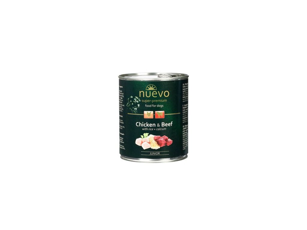 Konzerva pro psy Nuevo, junior, kuřecí + hovězí, 800 g
