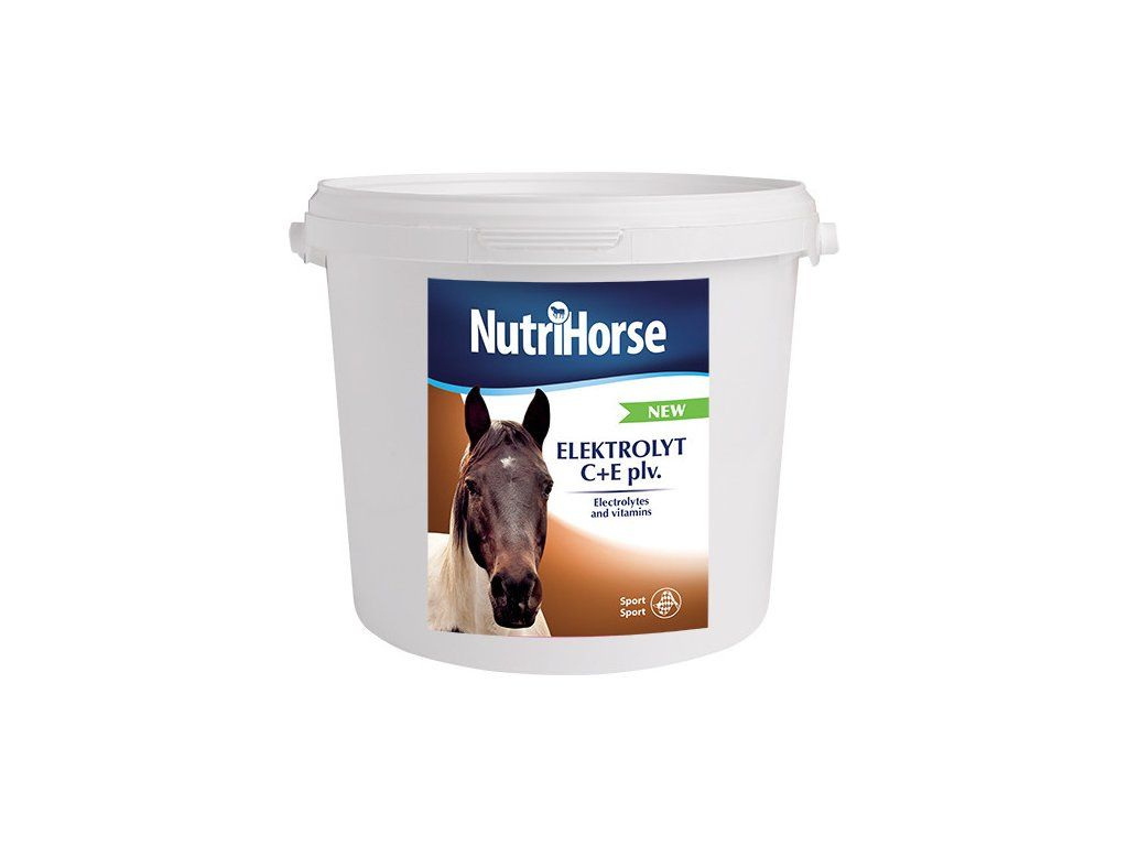 ELEKTROLYT C+E je sypké, minerální krmivo složené ze směsi elektrolytických solí doplněných o významné antioxidanty - vitamín C a E. Koncentrace soli v potu je výrazně vyšší než v krvi a proto, při nadměrném pocení dochází k obrovským ztrátám sodíku, draslíku, chlóru, hořčíku a vápníku. Tyto ztráty je nutné rychle obnovit a předcházet tak výskytu apatie a svalových křečí, způsobených nedostatkem těchto prvků. Přípravek je vhodný podávat zejména v době intenzivní zátěže a v období horkých letních dní, kdy dochází k nadměrnému pocení koní. Přípravek pomáhá vyrovnat acidobazickou rovnováhu, zlepšuje regeneraci organismu po zátěži a při použití před zvýšenou zátěží umožní organismu vytvořit si rezervu těchto elektrolytů. Elektrolyt C+E by měl být koním podáván po celý rok – v zimě v nižších dávkách, naopak v létě, kdy se koně potí více, je nutné dávky zvýšit. • Speciálně navržený pro sportovní koně - se zvyšující se fyzickou námahou, se zvyšuje i potřeba vitamínu E a vitaminu C.