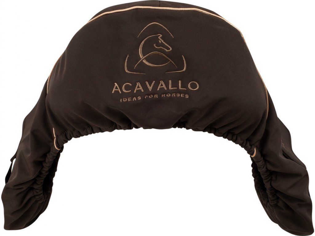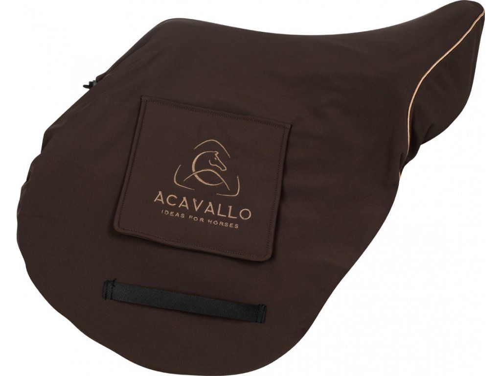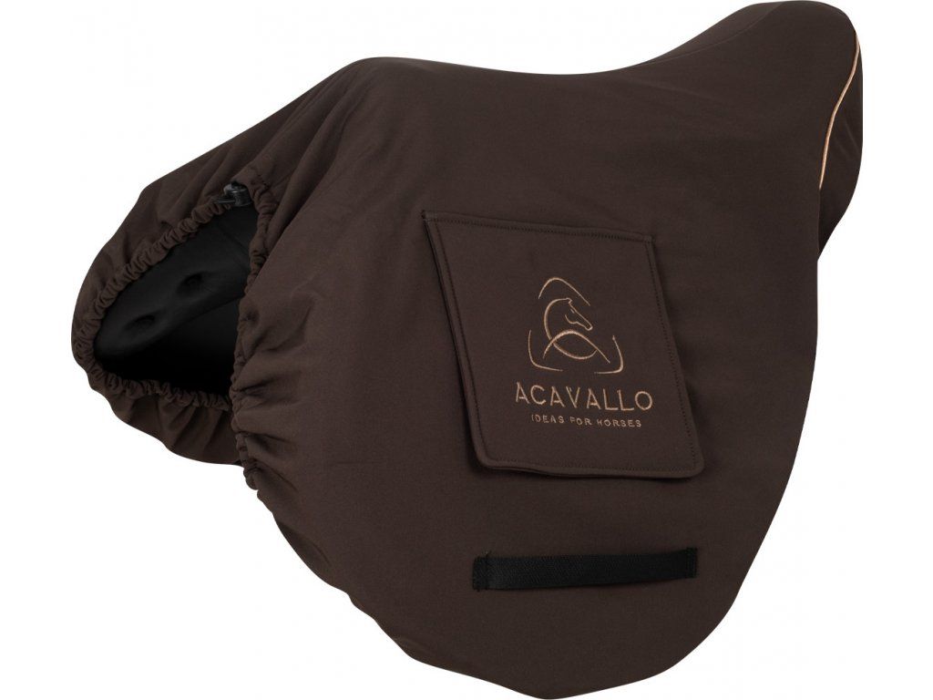 Obal na sedlo vyrobený z vodoodpudivého materiálu s fleecovou podšívkou. Chrání sedlo před nečistotami a vlhkostí. Vybaven praktickými bočními kapsami pro uložení třmenů a poutky na provlečení podbřišníku. Snadno se přizpůsobí na všechny typy anglických sedel díky nastavitelné elastické šňůrce. Zdobený logem a nápisem Acavallo na bočních kapsách a vzadu. Dostupný ve více barvách.