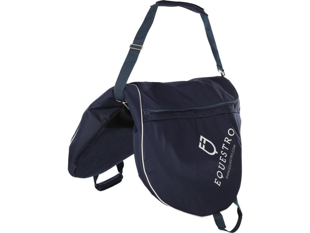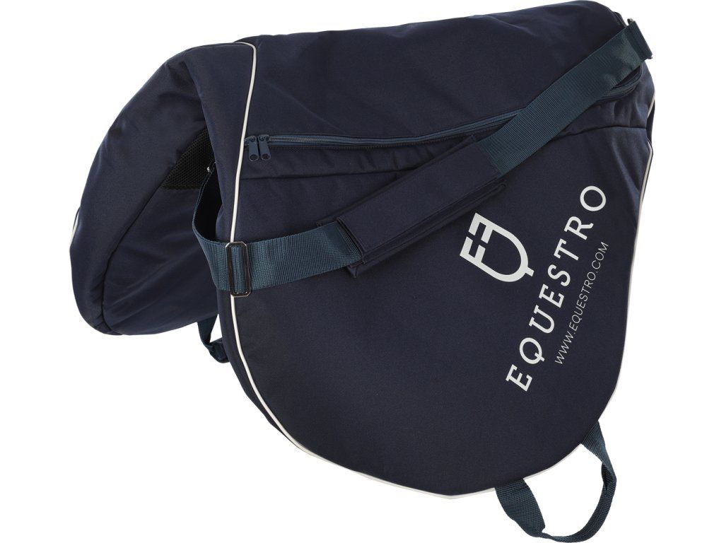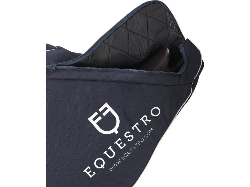 Kvalitní obal na sedlo ideální na závody. Vyroben z vodoodpudivého materiálu, který se snadno omývá. Silné polstrování chrání sedlo před poškrábáním. Usnadňuje přenášení sedla díky dvěma variantám. Vybaven nastavitelným ramenním popruhem s polstrováním na rameni a dvěma uchy umístěnými na koncích, které lze k sobě spojit polstrováním na suchý zip. Zapínání na zip po celé délce a dvojitý jezdec umožňuje snadnou manipulaci se sedlem. Opatřen ventilací pro únik pachů. Vhodný pro anglická skoková sedla. Zdobený logem a nápisem Equestro.