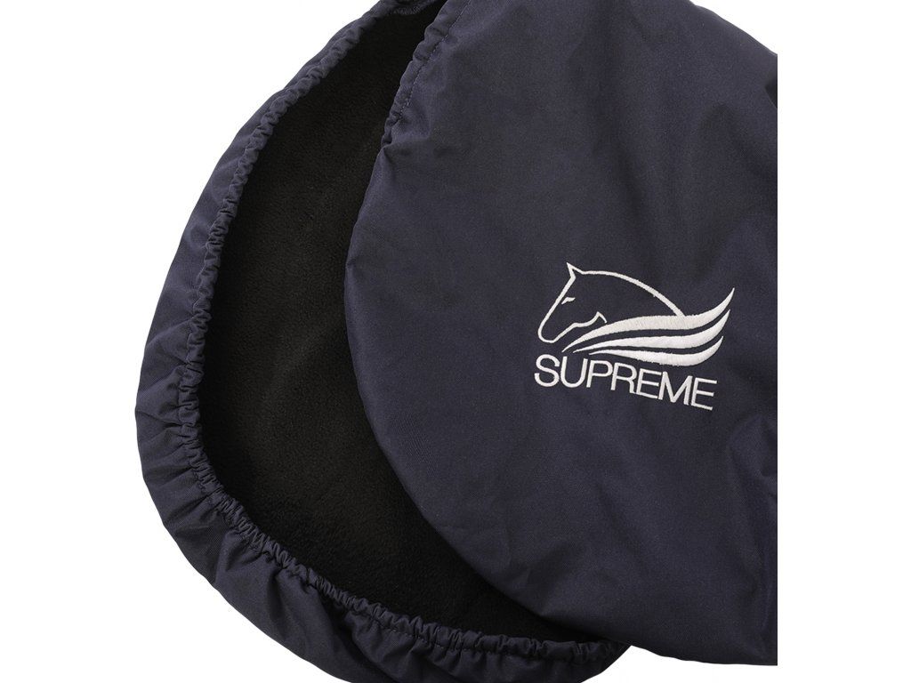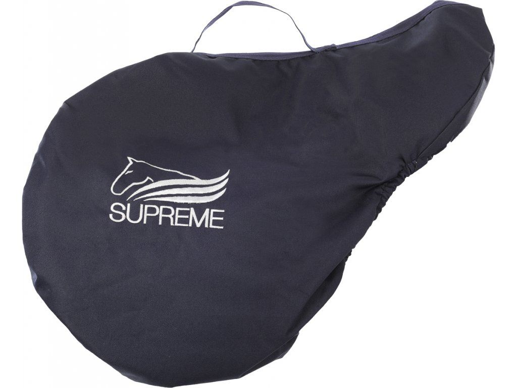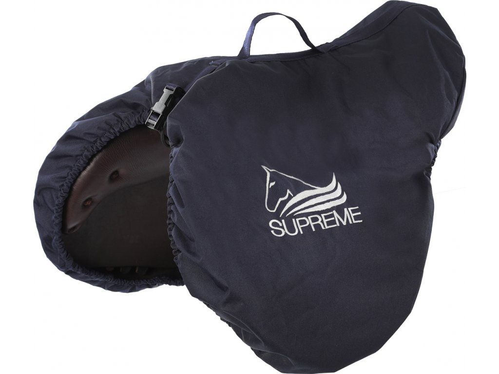 Obal na sedlo vyrobený z vodoodpudivého materiálu s fleecovou podšívkou. Obal chrání sedlo před deštěm a nečistotami. Snadno se přizpůsobí téměř na každé anglické sedlo. Zdoben velkým logem Supreme.