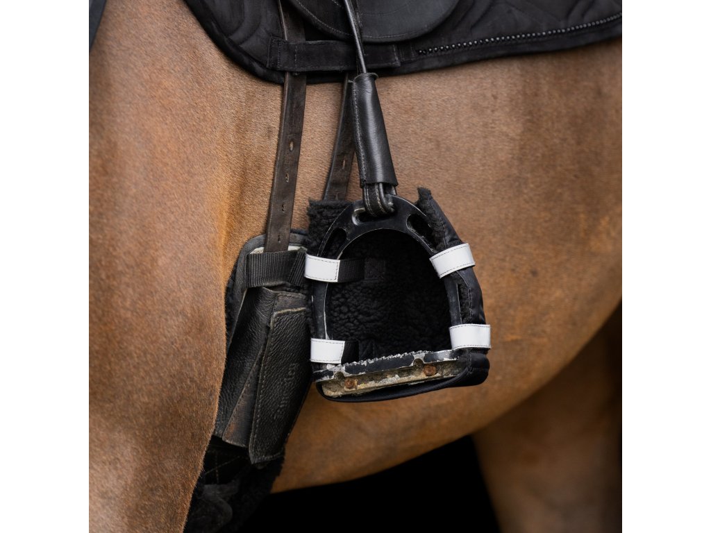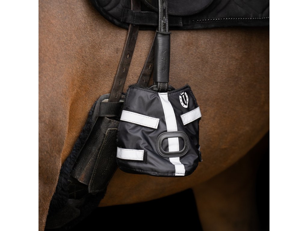 Hřejivé jezdecké obaly na třmeny Luminous do chladného zimního počasí, které zajišťují tepelný komfort a lepší viditelnost. Měkká fleecová podšívka udržuje prsty příjemně v teple i během studených ranních nebo večerních jízd. Reflexní prvky zvyšují bezpečnost za šera i tmy a gumové očko umožňuje připevnění LED světla pro ještě lepší viditelnost. Obaly se snadno a bezpečně nasazují na třmeny. Dodávány v páru.