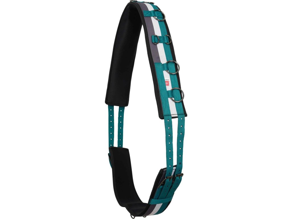 Lonžovací obřišník Deluxe je vyroben z kvalitního nylonu s pohodlnou neoprenovou podšívkou. Disponuje kovovými kroužky pro různé možnosti nastavení lonžovacích pomůcek podle potřeb vašeho koně. Na rozdíl od tradičních obřišníků neleží rovně na kohoutku, což zajišťuje optimální pohodlí a volnost pohybu.