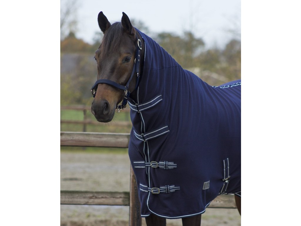 Kvalitní odpocovací deka, která dobře a rychle absorbuje pot. Vybavena je dvojitým předním zapínáním křížovým zapínáním pod břichem. Krční část se zapíná pomocí suchého zipu. Zdobena je bílým lemováním. Vyrábí se ve dvou barevných variantách.