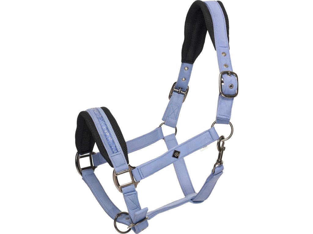 Třpytivá ohlávka s polstrováním navržená pro maximální pohodlí vašeho koně. Prodyšné polstrování v oblasti nánosníku a nátylníku zajišťuje komfort při každodenním používání. Zdobení se třpytkami na nánosníku dodává stylový nádech. Velikost ohlávky lze upravit v oblasti nánosníku a nátylníku.