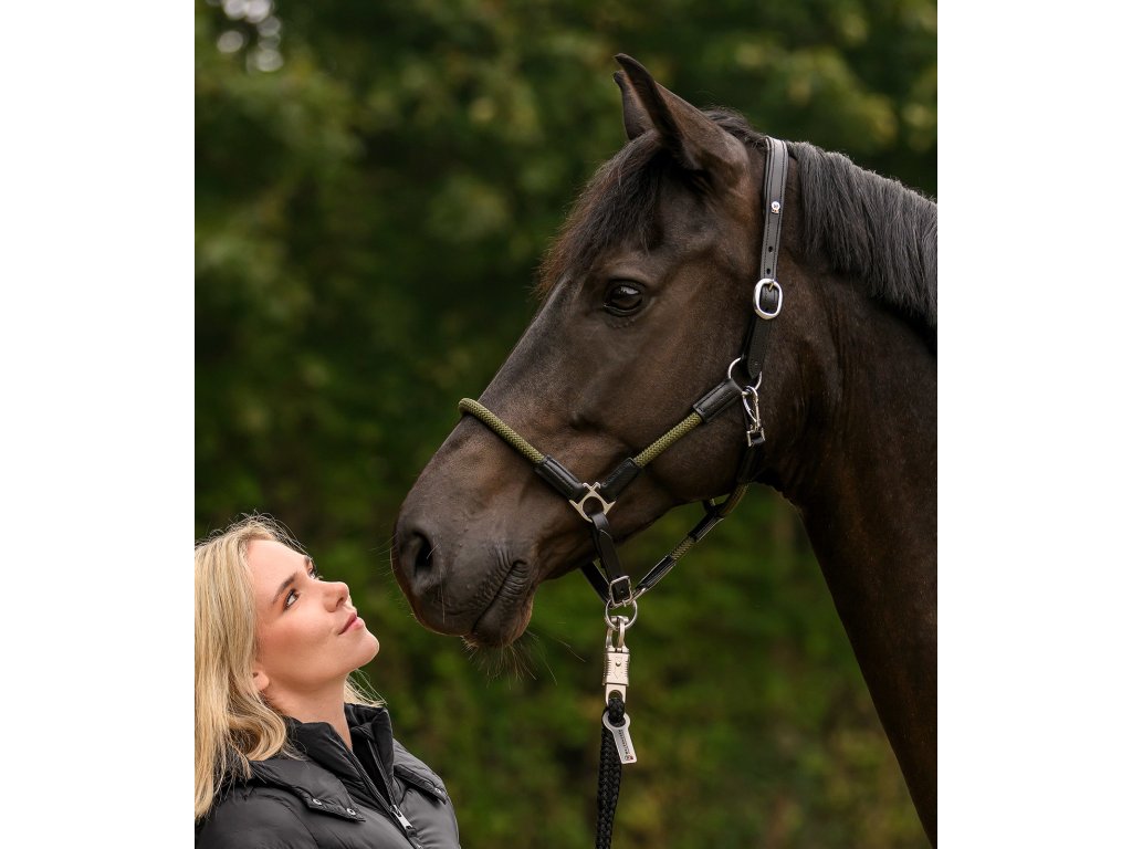 Odolná ohlávka vyrobená z měkké kůže a doplněná provazovými detaily. Opatřena je polstrováním na nátylníku pro maximální pohodlí a kvalitním kováním z nerezové oceli. Nastavitelný nánosník i nátylník.