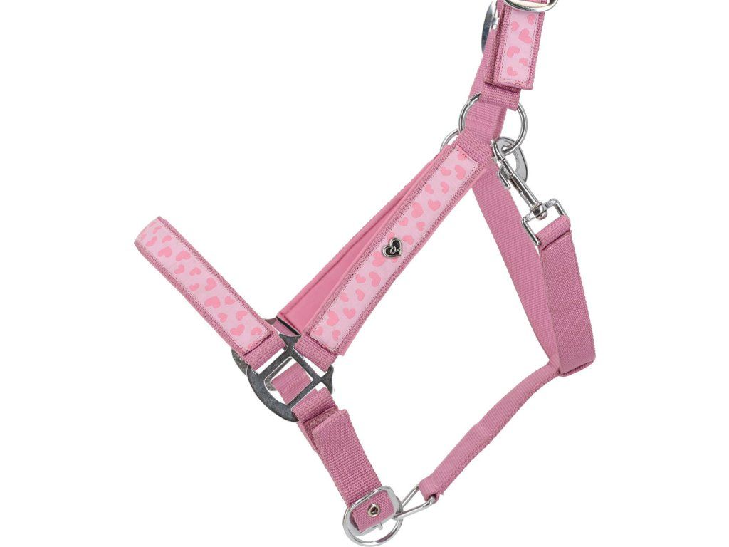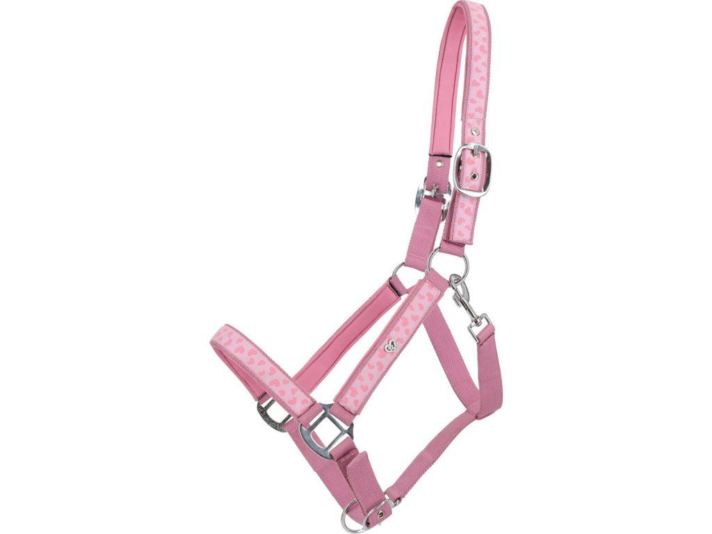 Roztomilá ohlávka s motivem srdíček, která zaujme na první pohled. Nastavitelný nátylník a nánosník umožňují snadné přizpůsobení velikosti. Nátylník, lícnice i nánosník jsou měkce polstrované. Ohlávka je vybavena klasickým zapínáním na karabinu.