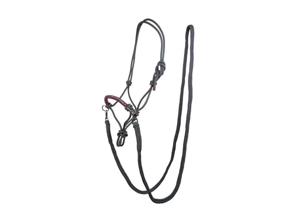 Ohlávka provazová s otěžemi Strass HKM, grey/raspberry