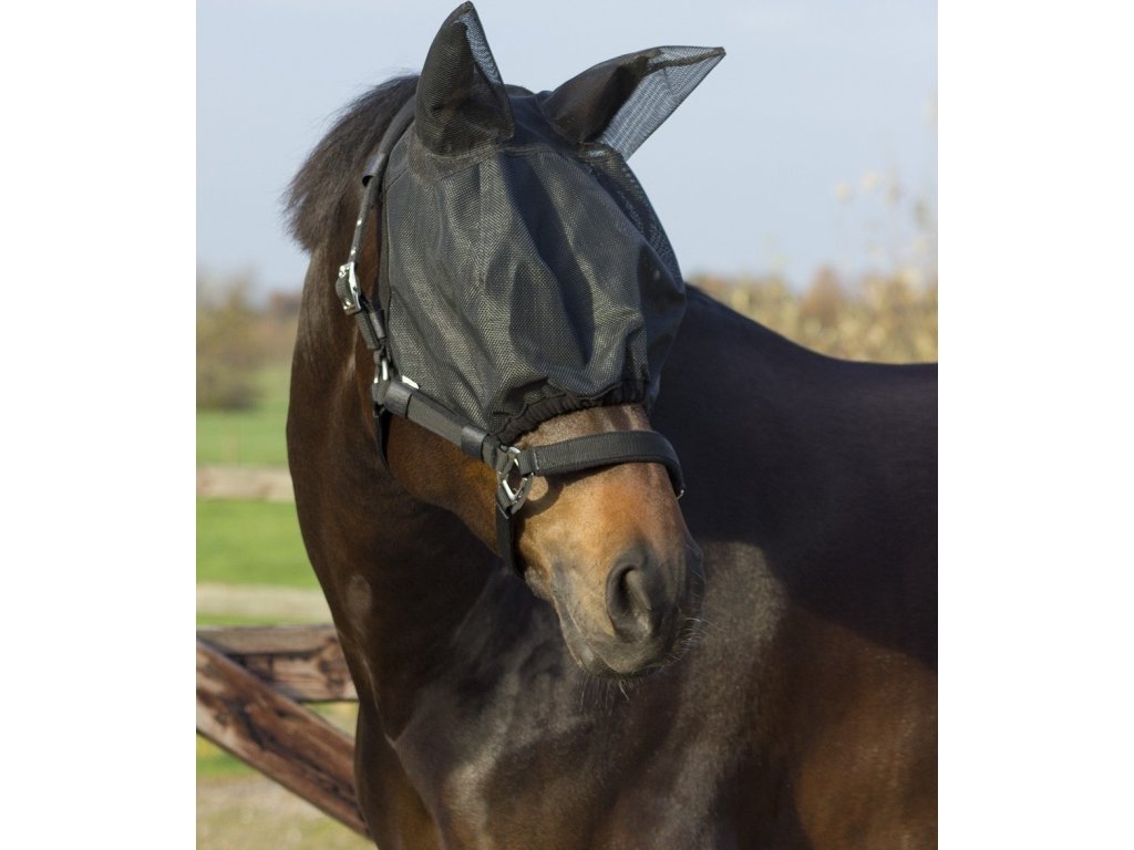 Vysoce kvalitní ohlávka vybavena odnímatelnou maskou proti hmyzu, která je připevněna pomocí suchého zipu. Elastický "nánosník" masky zajišťuje, že maska těsně přiléhá k nosu. Maska a i ohlávka jsou lemované příjemným fleecem. Ohlávku lze nastavit na nátylníku a nánosníku dle potřeby a je možnost jí využít bez masky.