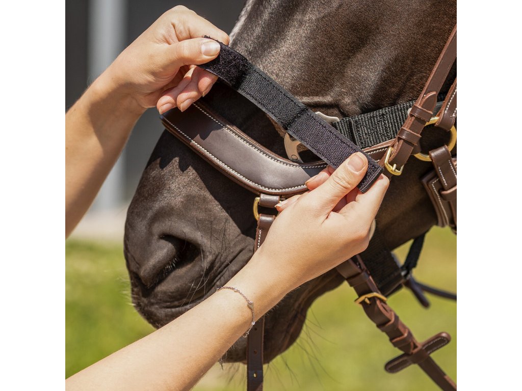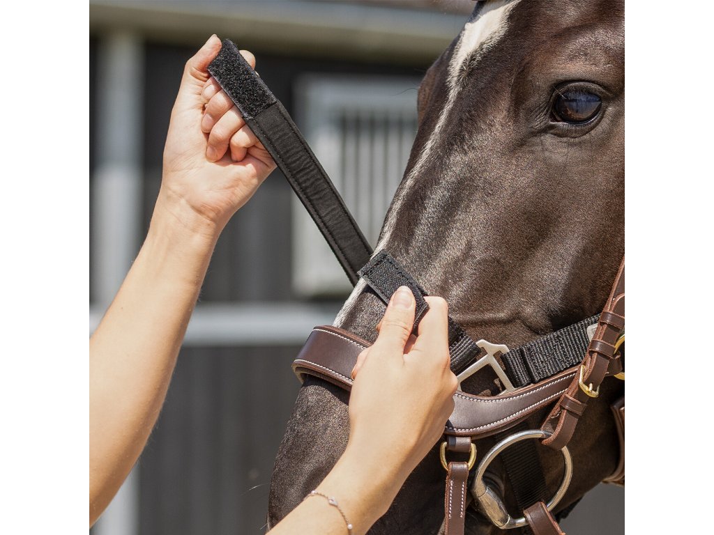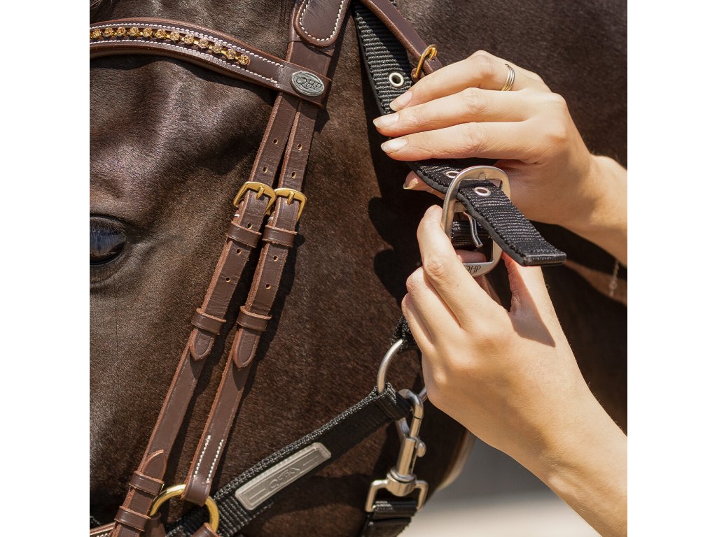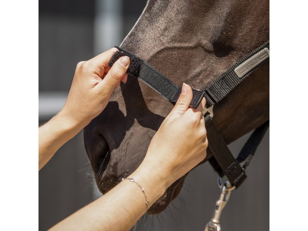Praktická ohlávka vyrobená z odolného polypropylenu je ideální volbou pro každodenní použití. Pro maximální pohodlí je nánosník i nátylník měkce polstrovaný, takže ohlávka dobře sedí a netlačí ani při delším nošení. Velkou výhodou je možnost rozepnutí jak na nátylníku, tak na nánosníku, díky čemuž ji snadno sundáte i z koně, který je již osedlaný a má nasazenou uzdečku. Ohlávka je nastavitelná na nátylníku a zapínání nánosníku je řešeno pomocí suchého zipu, což zajišťuje rychlou a jednoduchou manipulaci.