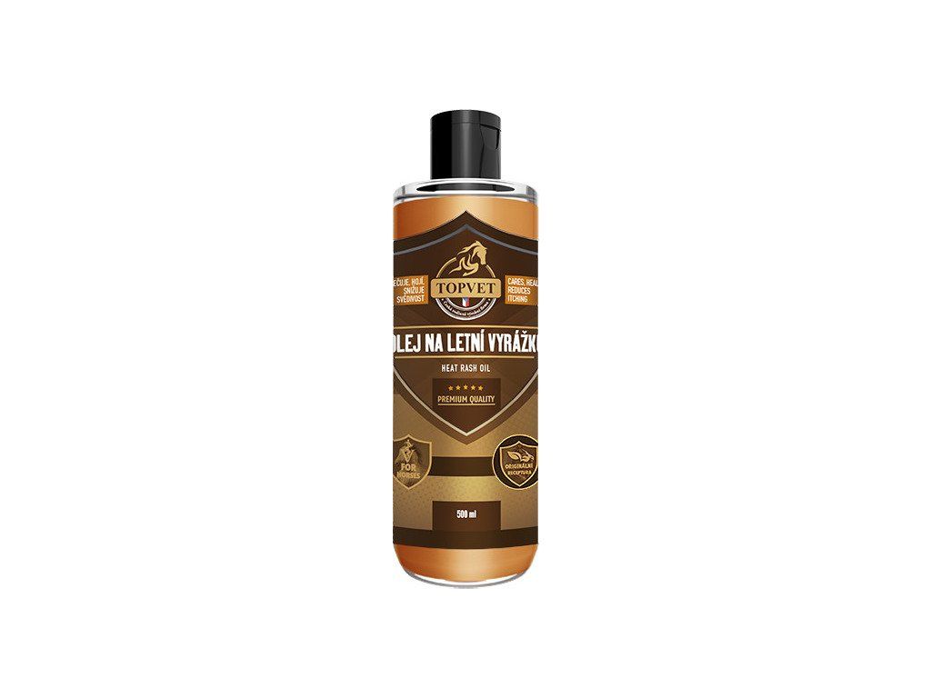 Olej na letní vyrážku je určený pro koně s kožními problémy. Originální receptura pokožku vyživuje, hydratuje a chrání před vnějším prostředím. Bylinná kompozice pokožku zvláčňuje, snižuje svědivost a obnovuje elasticitu. Olej vykazuje dlouhodobý účinek.