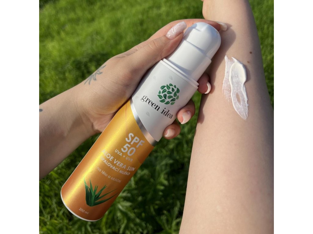 Opalovací mléko Aloe vera GREEN IDEA, SPF 50, 200 ml