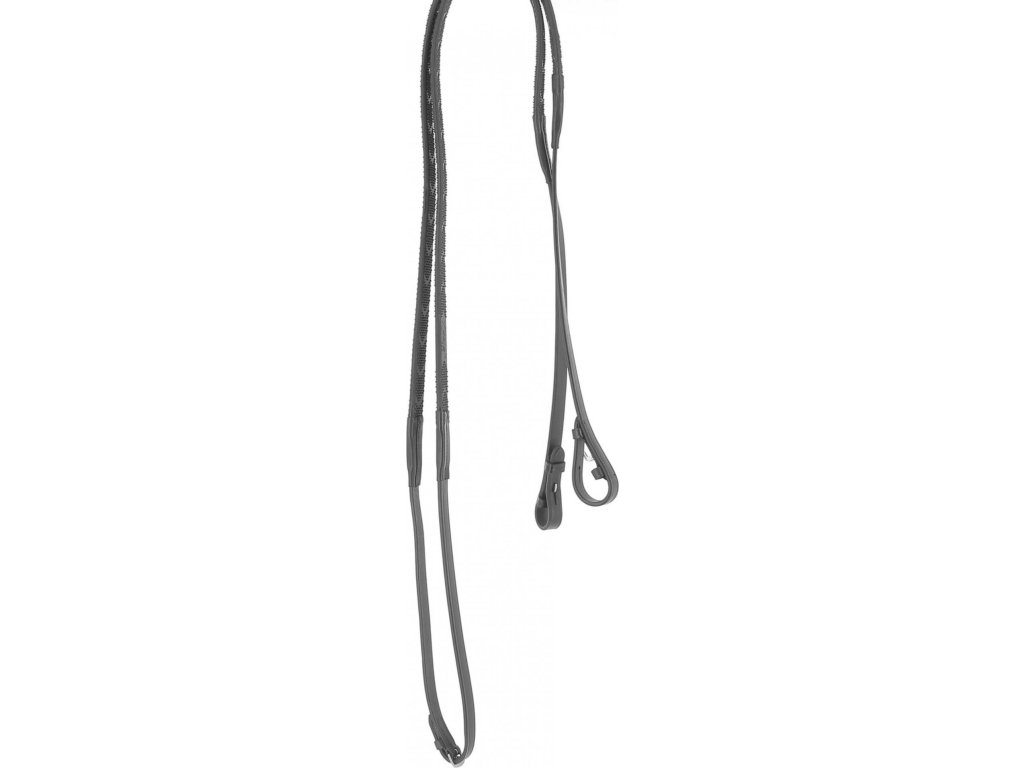 Gumové otěže ladící s uzdečkou Daily od výrobce Penelope. Jsou vybavené koženými konci a přezkami ve stříbrné barvě.