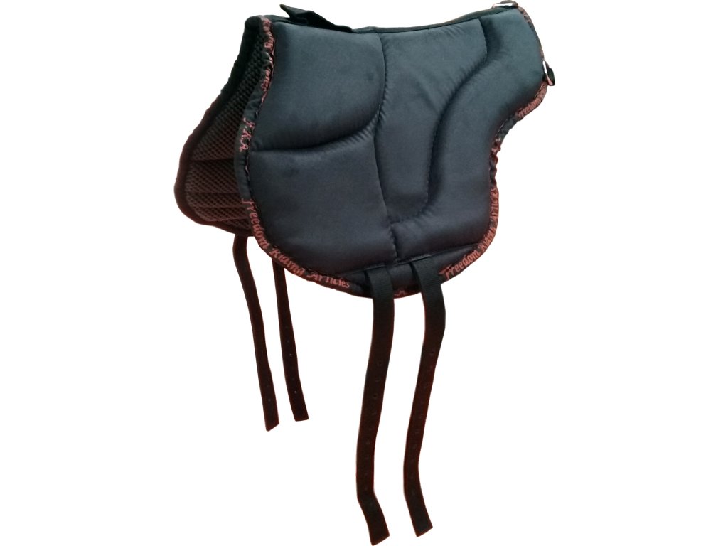 Jezdecký pad Dardo F.R.A zajišťující výborný kontakt mezi jezdcem a koněm. Jízda bez sedla je pro koně i jezdce často vítanou změnou každodenního tréninku. Jeho anatomický tvar se snadno přizpůsobí každému koňskému hřbetu, podporuje správný sed a poskytuje oporu. Vrchní strana je potažena semišovým materiálem, tudíž je pad pro jezdce protiskluzový. Vypodložený je vrstvou ze Sympa materiálu, který perfektně odvádí pot. Sympa materiál je protiskluzový neopren zajišťující velmi dobrou prodyšnost a stabilitu. Dále skvěle reguluje teplotu a odvádí vlhkost, navíc je anti-bakteriální a pro koně velmi příjemný. Vnitřní výplň je z pevné paměťové pěny s vysokou hustotou, díky tomu je pad pro jezdce pohodlný, měkký a tlumí nárazy. Vybavený systémem F.R.A. sps pro rovnoměrné rozložení tlaku. Systém F.R.A sps dobře rozkládá tlak podbřišníku do celého padu a chrání páteř koně. Tento model má volný páteřní kanál. Dále je vybavený praktickým poutkem, které lze snadno odepnout. Dodávaný bez podbřišníku. Rozměr velikosti FULL: 44 x 35 cm. K dispozici i v hnědé barvě a ve velikosti FULL. Skvělý poměr ceny a kvality od holandské značky F.R.A.