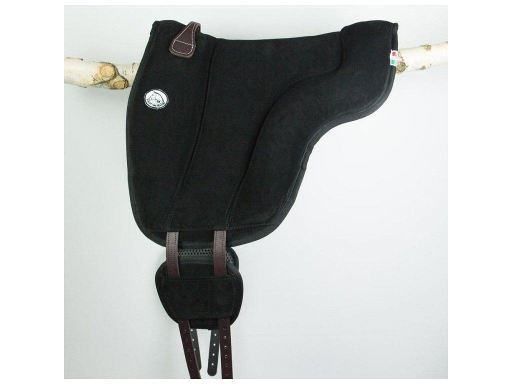 Jezdecký pad zajišťující výborný kontakt mezi jezdcem a koněm. Jízda bez sedla je pro koně i jezdce často vítanou změnou každodenního tréninku. Spodní část je vyrobena z materiálu Sympatex. Díky tomuto materiálu je pad protiskluzový, prodyšný a podporuje optimální rozložení tlaku. Horní část je vyrobena z příjemného mikrofleecu, který je velmi snadný na údržbu. Jeho anatomický tvar se snadno přizpůsobí každému koňskému hřbetu a to i koním s vysokým kohoutkem. Jeho tvar dále podporuje správný sed a poskytuje oporu. Vybavený je praktickou rukojetí na přidržení jezdce a nechybí ani protiskluzné boční měkké krytky řemenů, které zaručí vašemu koni maximální komfort. Pad Brockamp Special je dodávaný včetně neoprénového podbřišníku s délkou 55 cm. Rozměr: 58×54 cm. K dispozici ve velikosti PONY i FULL a v mnoha krásných barvách.