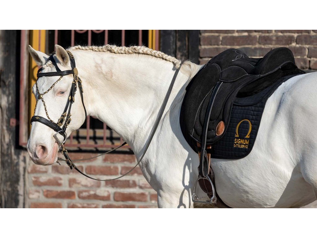 Paddle od výrobce Signum spojuje výhody jezdeckého padu a sedla, zlepšuje harmonii a komunikaci mezi jezdcem a koněm. Anatomický tvar a flexibilní konstrukce zajišťují přirozené přizpůsobení hřbetu koně. Komoru lze upravit dle individuálních potřeb pomocí klíče o velikosti 12 mm. Paddle přináší zcela nový pocit z jízdy. Umožňuje použití třmenových řemenů a třmenů, což jezdci zajišťuje maximální komfort a stabilitu. Speciálně vyvinutý systém odpružení rovnoměrně rozkládá tlak a bezpečně uchycuje třmeny. Díky komfortnímu polstrování nabízí nejen pohodlí, ale i maximální kontakt s koněm. Povrch z vysoce kvalitní semišové kůže poskytuje výjimečně bezpečný sed, ať už jezdíte v rajtkách s koženým sedem nebo v běžných džínách (nedoporučujeme rajtky s gripem kvůli zvýšenému riziku opotřebení kůže). Semišová úprava poskytuje nejen výbornou přilnavost, ale podporuje klidný sed a neustálý kontakt s koněm i v dynamických momentech. Mírně zvýšené posedlí v zadní části podporuje vzpřímené držení těla. Pohodlné kolenní opěrky pomáhají udržet dlouhou nohu a zabraňují jejímu vytahování nahoru. Pro rovnoměrné rozložení tlaku lze Paddle kombinovat s Velcro pads, tedy polštáři na suchý zip, které fungují podobně jako sedlové polštáře u klasických sedel. Tyto polštáře je možné dokoupit samostatně.