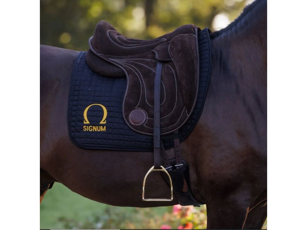 Paddle od výrobce Signum spojuje výhody jezdeckého padu a sedla, zlepšuje harmonii a komunikaci mezi jezdcem a koněm. Anatomický tvar a flexibilní konstrukce zajišťují přirozené přizpůsobení hřbetu koně. Komoru lze upravit dle individuálních potřeb pomocí klíče o velikosti 12 mm. Paddle přináší zcela nový pocit z jízdy. Umožňuje použití třmenových řemenů a třmenů, což jezdci zajišťuje maximální komfort a stabilitu. Speciálně vyvinutý systém odpružení rovnoměrně rozkládá tlak a bezpečně uchycuje třmeny. Díky komfortnímu polstrování nabízí nejen pohodlí, ale i maximální kontakt s koněm. Povrch z vysoce kvalitní semišové kůže poskytuje výjimečně bezpečný sed, ať už jezdíte v rajtkách s koženým sedem nebo v běžných džínách (nedoporučujeme rajtky s gripem kvůli zvýšenému riziku opotřebení kůže). Semišová úprava poskytuje nejen výbornou přilnavost, ale podporuje klidný sed a neustálý kontakt s koněm i v dynamických momentech. Mírně zvýšené posedlí v zadní části podporuje vzpřímené držení těla. Pohodlné kolenní opěrky pomáhají udržet dlouhou nohu a zabraňují jejímu vytahování nahoru. Pro rovnoměrné rozložení tlaku lze Paddle kombinovat s Velcro pads, tedy polštáři na suchý zip, které fungují podobně jako sedlové polštáře u klasických sedel. Tyto polštáře jsou součástí balení. Celý set je v hnědé čokoládové barvě. V balení je rovněž praktický set pro individuální úpravu komory, který obsahuje měřidlo, klíč a návod.