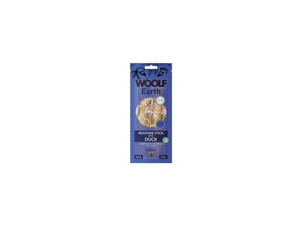 Psí pochoutka ve formě tyčinky je doplněna o kachní maso. Balení je opatřeno zipem pro případ, že bude potřeba pamlsek znovu uskladnit. Uchovávejte na chladném a suchém místě. Datum spotřeby je vyznačen na obalu. Není určeno pro lidskou spotřebu. Velikost: L - vhodné pro všechny velikosti psů, ale primárně doporučováno pro velká plemena. Složení: želatina ze surové kůže 43,8%, želatina z hověží kosti 30%, maso: kachní maso 20%, glycerin 1%, tapioka 5%, kyselina sorbová 0,2%. Nutriční hodnoty: hrubý protein 60%, hrubý tuk 2%, hrubá vláknina 2%, vlhkost 14%.
