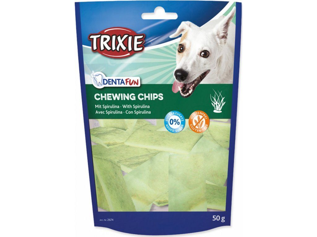 Trixie DENTAfun žvýkací chipsy obsahují řasu spirulina. Jsou bohaté na proteiny, aminokyseliny, minerály, stopové prvky a vitamíny. Posilují imunitní systém a zvyšují vitalitu psa. Jsou vyrobeny pouze z přírodních látek. Podporují dentální hygienu.