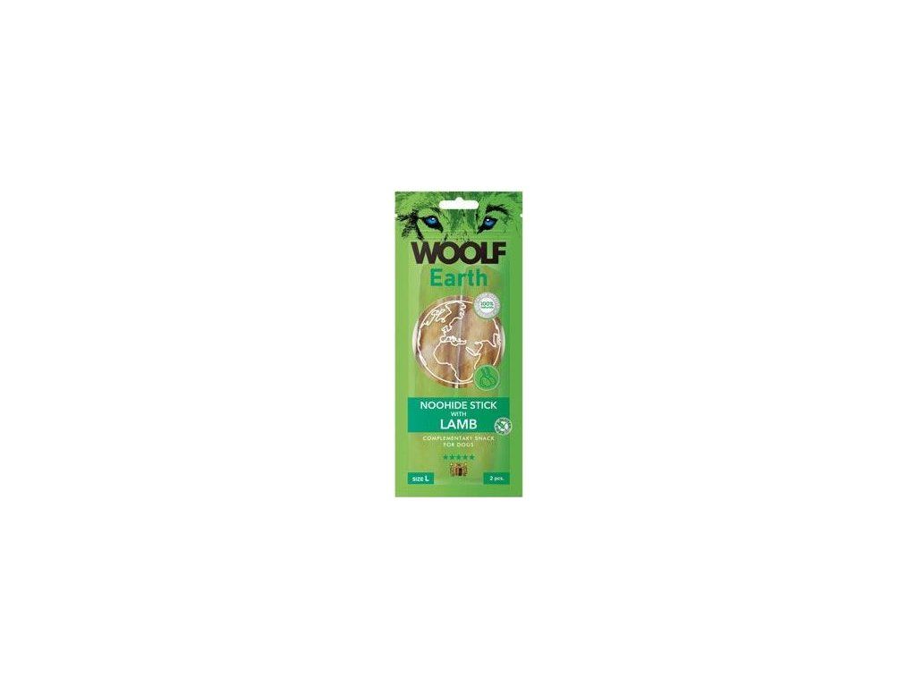 Psí pochoutka ve formě tyčinky je doplněna o jehněčí maso. Balení je opatřeno zipem pro případ, že bude potřeba pamlsek znovu uskladnit. Uchovávejte na chladném a suchém místě. Datum spotřeby je vyznačen na obalu. Není určeno pro lidskou spotřebu. Velikost: L - vhodné pro všechny velikosti psů, ale primárně doporučováno pro velká plemena. Složení: želatina ze surové kůže 43,8%, želatina z hověží kosti 30%, maso: jehněčí maso 20%, glycerin 1%, tapioka 5%, kyselina sorbová 0,2%. Nutriční hodnoty: hrubý protein 60%, hrubý tuk 2%, hrubá vláknina 2%, vlhkost 14%.