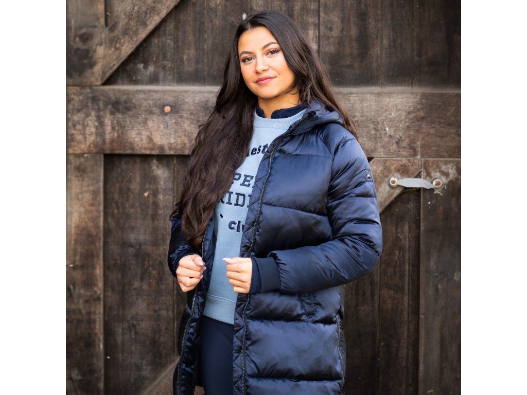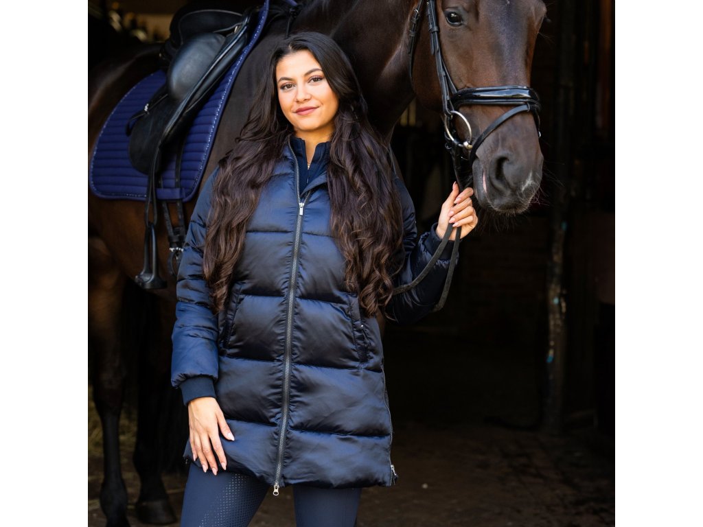 Stylová dámská parka vhodná na ježdění. Bunda má boční rozparky a dvoucestný zip. Vybavena předními kapsami na suchý zip a nastavitelnou kapucí. Teplé polstrování udrží příjemné teplo v chladných dnech. Zdobena elegantními detaily na zipu a stylovou nášivkou na rukávu. Doporučujeme prát maximálně na 30 ℃ a nesušit v sušičce.