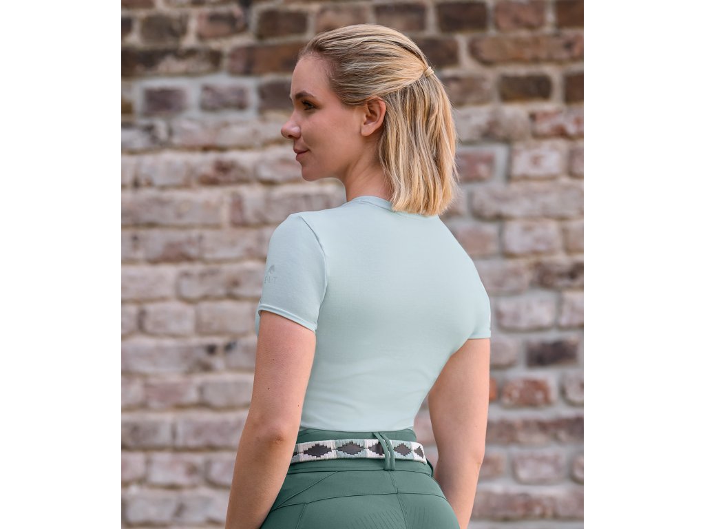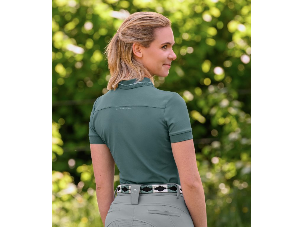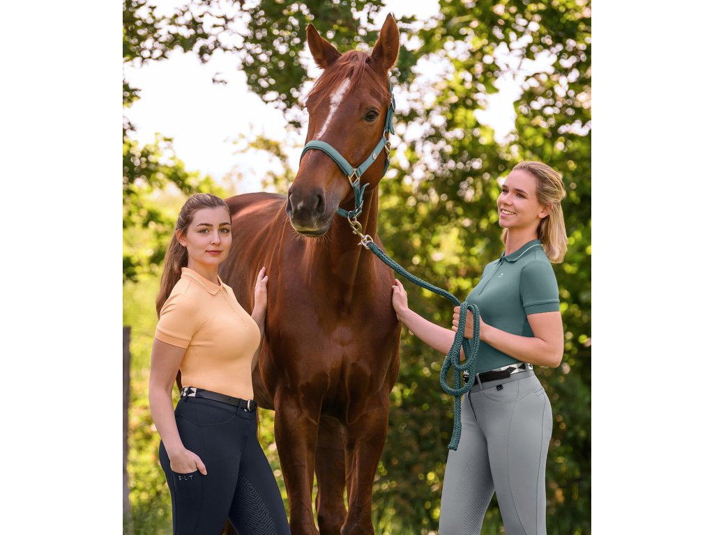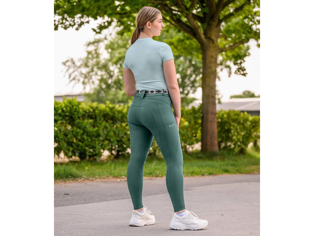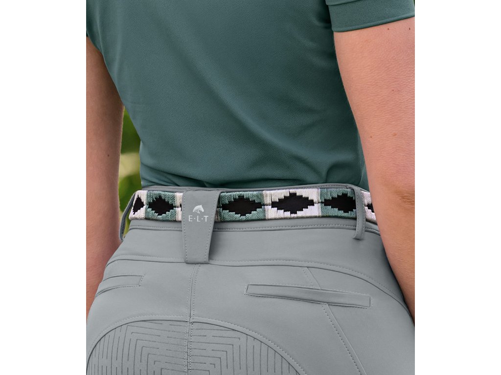 Elegantní kožený pásek se stříbrnou přezkou a decentním reliéfním logem E·L·T. Stylový detail dodává tříbarevné prošívání. Šířka pásku cca 3 cm.
