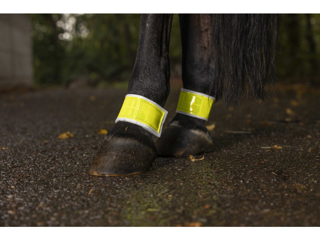 Vysoce reflexní pásky zajišťují maximální viditelnost zadní části koně za šera nebo tmy. Díky systému samočinného uchopení se snadno nasazují a bezpečně drží. Dodávají se v praktickém páru, aby byla ochrana zadních nohou kompletní a účinná při každé jízdě.