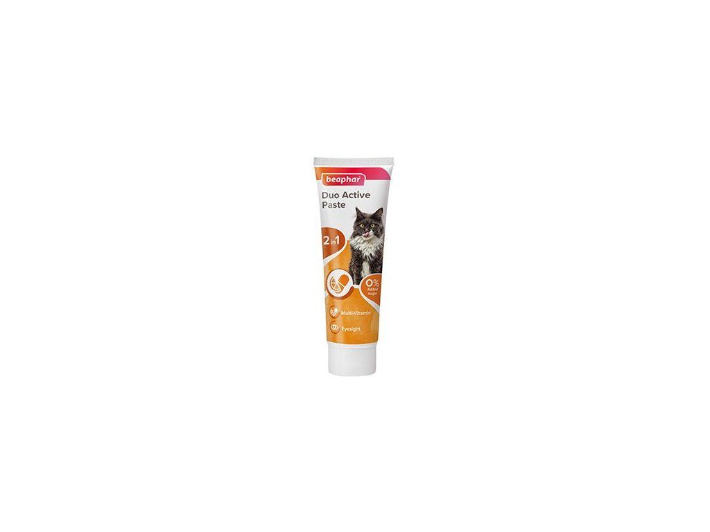 Dvoubarevná pasta Duo Active je doplňkové krmivo pro kočky, které dodává organismu vitamíny, minerály a další potřebné látky. Taurin napomáhá správné funkci srdce a zlepšuje zrak. Žlutá pasta pro zdravou pokožku, nádhernou srst a pevnou imunitu. Hnědá pasta s BIO MOS podporuje zdravou střevní mikroflóru. Uchovejte v chladu a suchu, mimo dosah dětí.