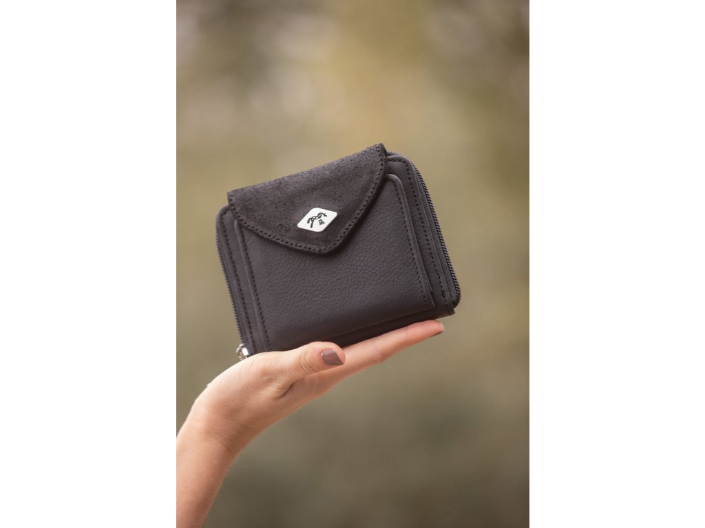 Stylová peněženka Clémence vyrobená z kvalitní hovězí kůže. Nabízí kapsu se zipem na mince a čtyři přihrádky na karty. Dále samostatnou část se zapínáním na patentku, která obsahuje další tři sloty na karty a průhledné okénko na fotografie nebo drobné dokumenty. Klopa této části je z třpytivé kůže, která dodává peněžence jedinečný šmrnc. Díky kompaktním rozměrům se snadno vejde do každé kabelky.