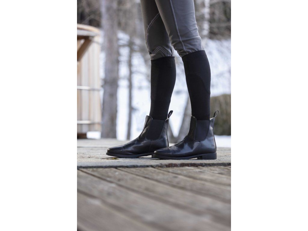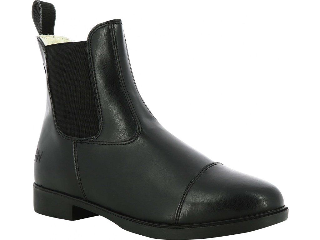 Zimní pérka First jsou praktické a pohodlné jezdecké boty ideální do chladného počasí. Jsou vyrobeny ze syntetického materiálu a mají vnitřní hřejivou podšívku ze syntetického beránku, která udržuje nohy v teple i během zimních dnů. Zesílená zadní část svršku zvyšuje odolnost a stabilitu boty při nošení i jízdě na koni. Měkká stélka z EVA pěny zajišťuje dobré tlumení nárazů a komfort při chůzi, zatímco gumová podešev poskytuje spolehlivou přilnavost.
