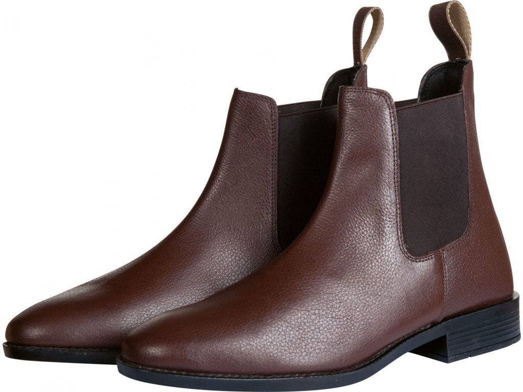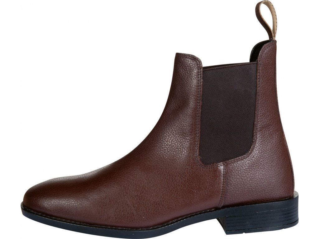 Vysoce kvalitní jezdecká pérka vyrobena z kůže. Vnitřní materiál je syntetický. Snadné obouvání díky elastickým bočním vložkám a látkovému poutku v zadní části boty. Vybavena gumovou profilovanou podrážkou s podpatkem. Dostupná také v černé barvě.