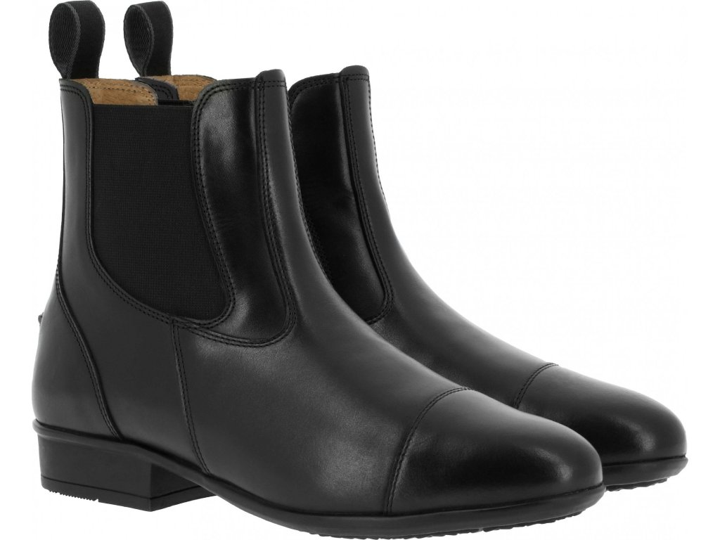 Unisex pérka Chic jsou elegantní a pohodlné jezdecké boty, které se skvěle hodí jak do stáje, tak i pro běžné nošení. Jsou vyrobené z kvalitní, měkké a zároveň odolné hovězí kůže, která se dobře přizpůsobí tvaru chodidla a zajišťuje dlouhou životnost. Elastické boční panely usnadňují obouvání a zaručují perfektní usazení na noze. O pohodlí při chůzi i v sedle se stará podrážka s technologií Air System, která účinně tlumí nárazy a poskytuje dobrou oporu chodidlu. Praktickým detailem jsou také zarážka na šporny na zadní straně.