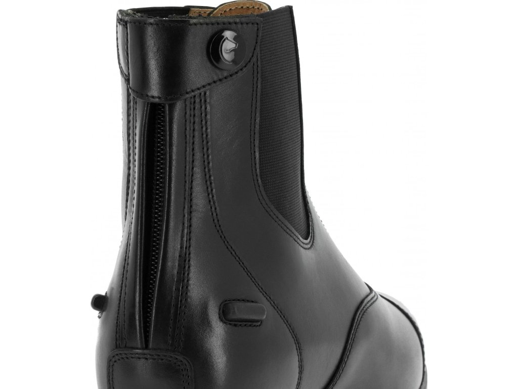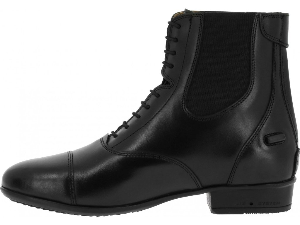 Elegantní a kvalitní jezdecké boty kombinují pohodlí, odolnost a moderní design. Vyrobené z prémiové hovězí kůže s elastickými bočními panely poskytují optimální padnutí a snadné nazouvání. Pro maximální komfort jsou boty vybaveny Air Systemem, který zajišťuje lepší tlumení nárazů při chůzi i ježdění. Vyšívání typu Blake zvyšuje odolnost a životnost bot a zarážky na ostruhy po stranách zajišťují stabilitu. Tyto boty nabízejí flexibilitu a podporu, takže noha zůstává pohodlná jak při jízdě, tak při chůzi. Díky kombinaci šněrování vpředu a zadního zipu se boty snadno obouvají a pevně drží nohu.