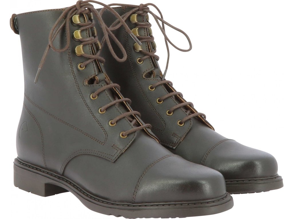 Kožená jezdecká pérka Dandy jsou pohodlné a odolné boty určené pro každodenní použití ve stáji i při ježdění. Kvalitní svršek z hovězí kůže zajišťuje dlouhou životnost a elegantní vzhled. Vnitřní podšívka z vepřové kůže přispívá k vyššímu komfortu při nošení. Praktické šněrování s háčky v horní části umožňuje přesné přizpůsobení noze a zip YKK na zadní straně paty usnadňuje obouvání i vyzouvání.