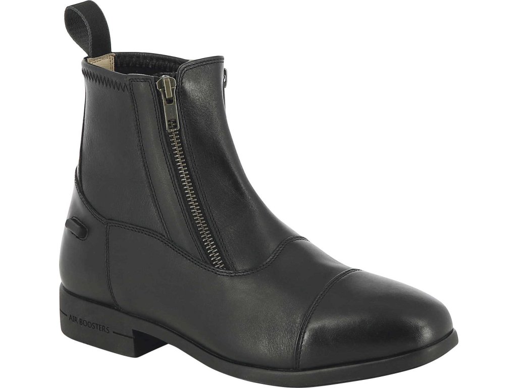 Kožená jezdecká pérka Double Zip nabízejí vysoký komfort, moderní design a výborné tlumení nárazů při chůzi. Jsou vyrobena z kvalitní hovězí kůže a opatřena dvěma zipy YKK pro snadné a rychlé obouvání. Prodyšná polyuretanová podšívka pomáhá udržovat příjemné klima uvnitř boty. Vyjímatelná stélka z měkkého polyuretanu rovnoměrně rozkládá tlak a gelová vložka na patě účinně tlumí nárazy. Předtvarovaná klenba zlepšuje oporu chodidla a zvyšuje pohodlí při dlouhodobém nošení. Speciální protiskluzová gumová podešev využívá dvojitý ventilační systém, který zajišťuje cirkulaci vzduchu v podrážce. Současně vytváří vzduchový polštář s tlumicím efektem pro maximální pohodlí při chůzi.